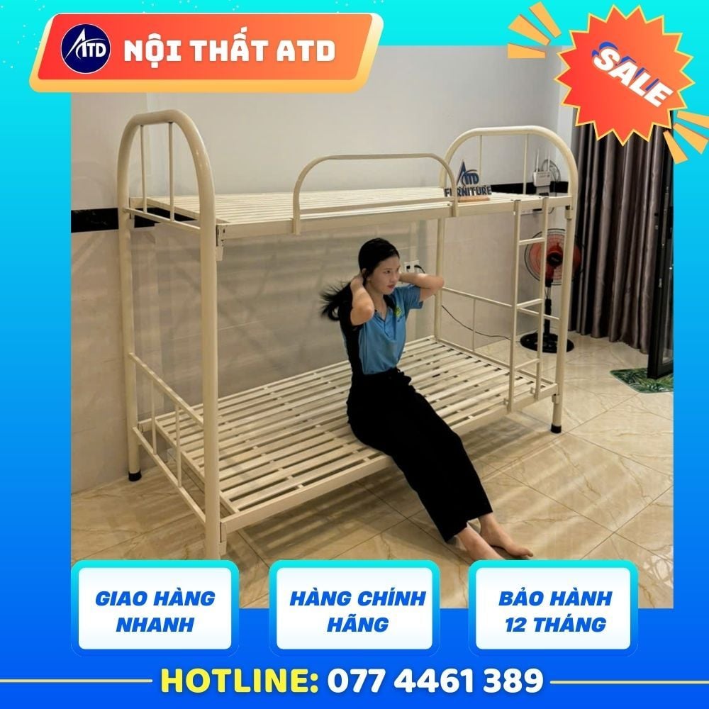Tiết kiệm không gian hiệu quả: Với kích thước 1m/1m x 2m, giường tầng này là giải pháp tuyệt vời cho các phòng ngủ nhỏ, giúp bạn tối đa hóa không gian mà vẫn đảm bảo sự thoải mái khi nghỉ ngơi.